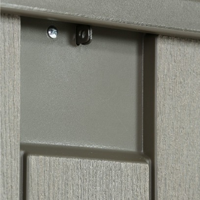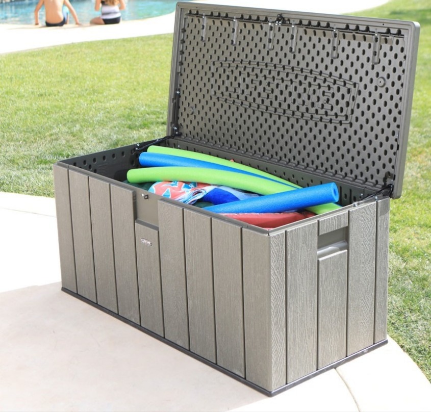 Čvrsta dvoslojna konstrukcija od polietilena visoke gustoće (HDPE) čini sanduk čvrstim i izdržljivim. Otporan na vremenske uvjete. Sustav otvaranja i zatvaranja s pneumatskim klipovima koji olakšava pristup stvarima.Svijetlo smeđa boja, efekt drveta.